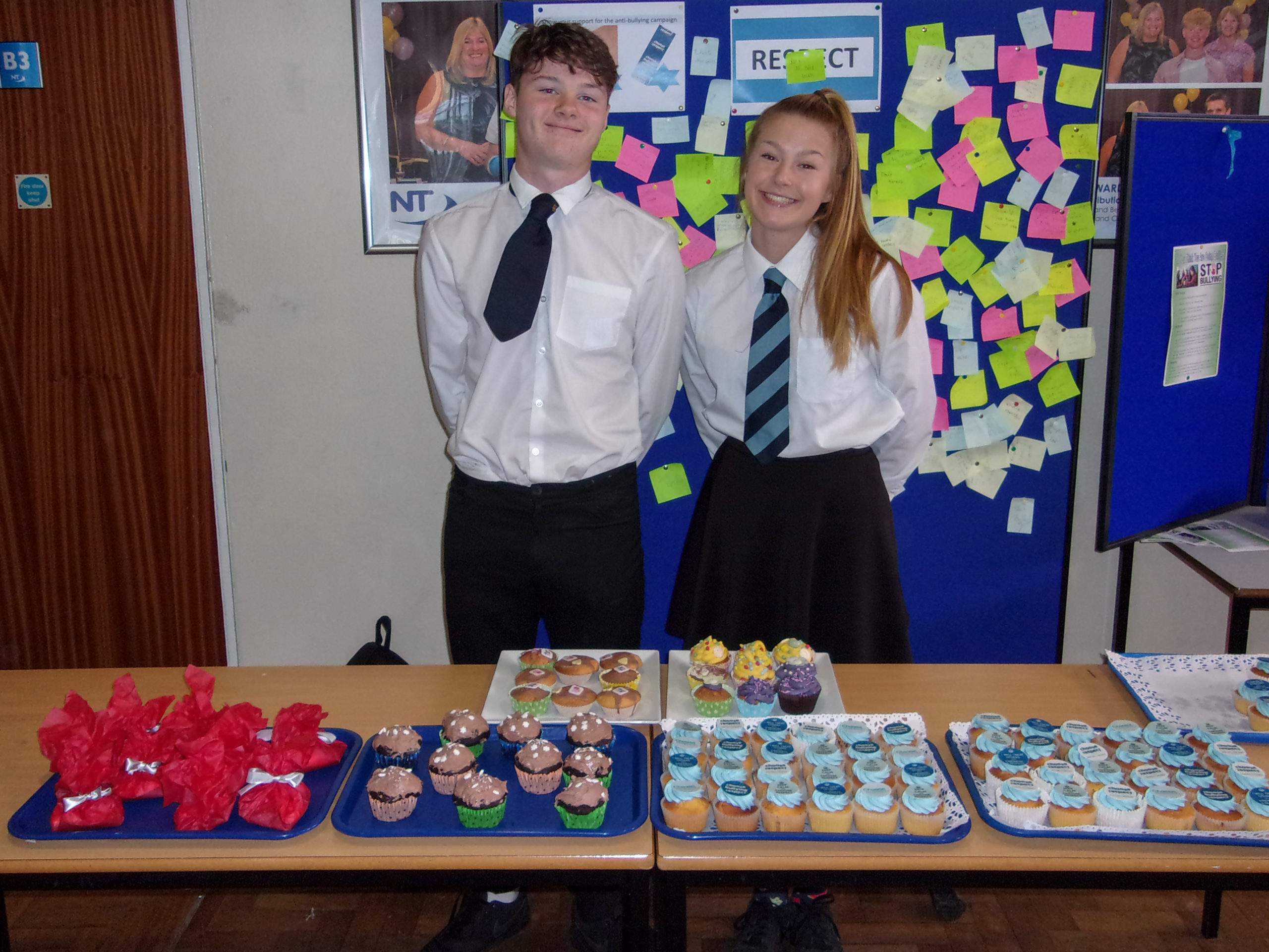 During the themed week long campaign students took part in; creating interactive stands which displayed ‘Pay It Forward’ – written out acts of kindness messages, raising awareness of differences with literature on LGBT, Mental Health awareness and disability, a message balloon display, an anti-bullying wristband sale, an NT RESPECT cake sale and an odd socks day to celebrate diversity.