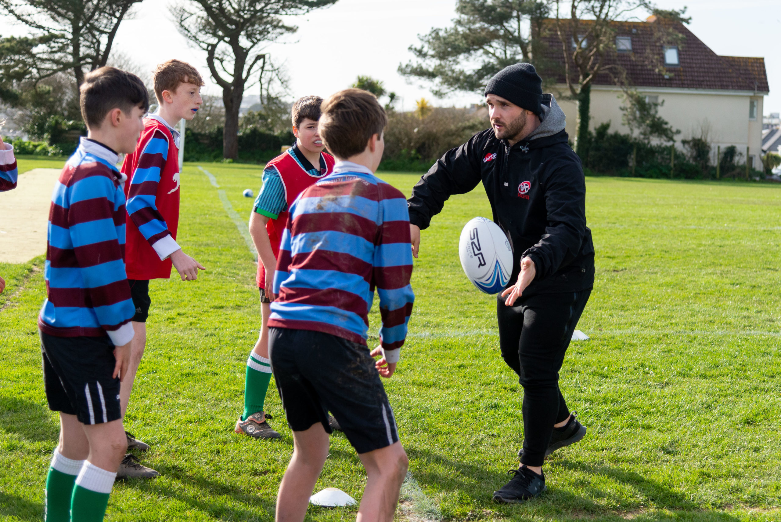 The Cornish Pirate players delivered a rugby training session as part of their community programme and taught Tretherras students rugby seven’s skills.