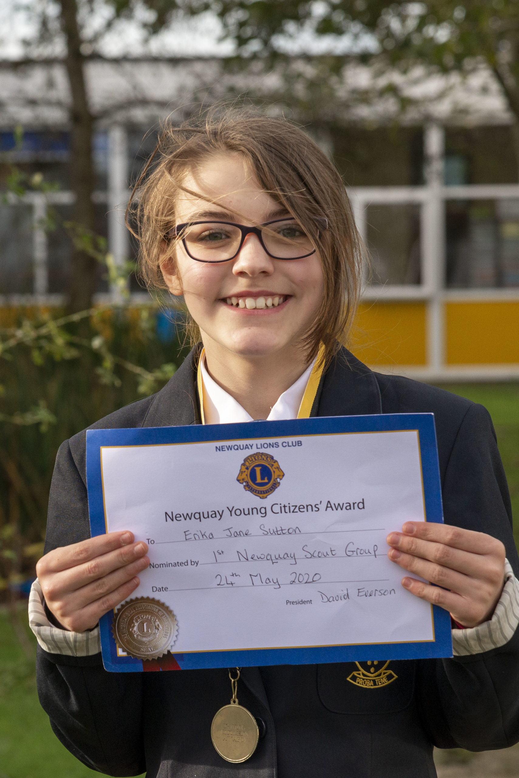 Mr David Everson of the Newquay Lions was unable to present the award in person but commented, “Erika is a credit to our Scout Troop, she is determined, honest, empathic, caring, and cheerful under all circumstances. She has displayed all of the qualities that we, as Scouts aspire to. All this she has achieved, not in spite of her Autism, but in many cases, because of her Autism. She is a shining of the fact that Autism is not a disability, just a different way of looking at the world.”